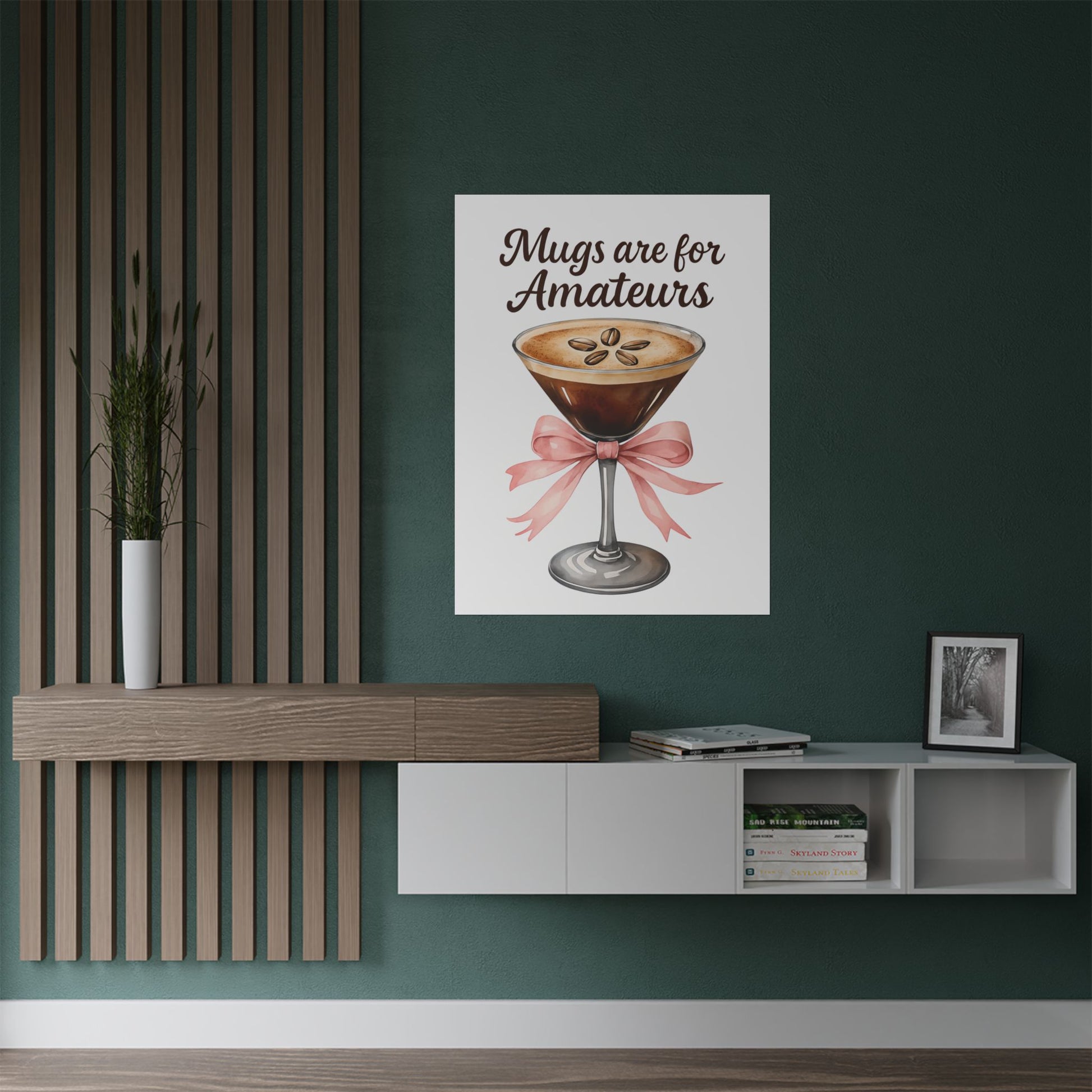 The "Mug are for Amateurs" Art Print Satin Poster exudes a playful and witty vibe, perfect for those who appreciate humor in their decor. This poster can be a great addition to a home office or creative space, adding a touch of personality to the room. Relevant for those who enjoy unique and quirky artwork, this poster is ideal for birthdays, housewarming gifts, or simply to add a pop of fun to any room.