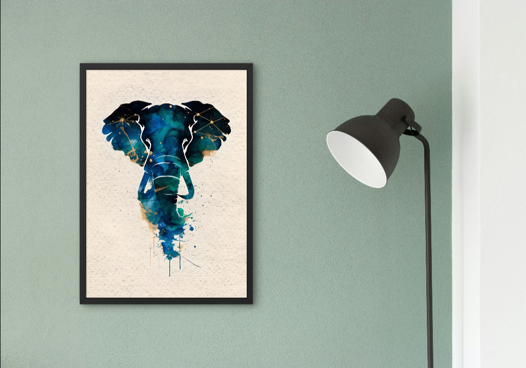 Bohemian Elephant Watercolour Art Print framed Canvas. This unique piece provides a bohemian vibe to any space and is perfect for art enthusiasts and animal lovers. Ideal for home decor, gifting, and special occasions like birthdays and housewarmings.