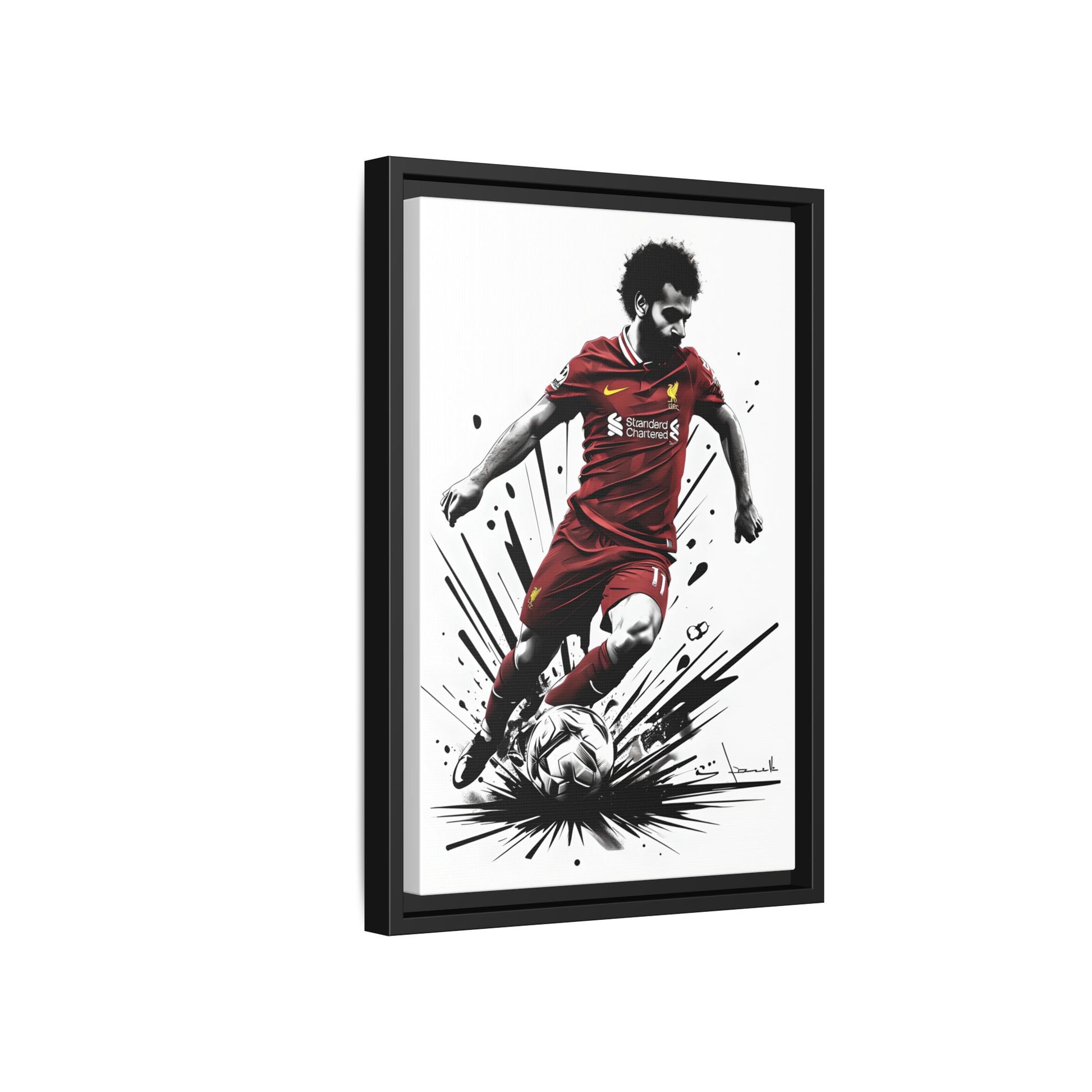 Celebrate your love for football with this Matte Canvas Print featuring Mo Salah of Liverpool. Perfect for football fans and sports enthusiasts, this vibrant and high-quality print adds a sporty touch to any room. Ideal for decorating a game room, office, or bedroom, this canvas print makes a great gift for birthdays, holidays, or special occasions. Product features - Unique canvas coating for high-quality images - Sustainable product made from FSC certified wood - Vibrant colors using latest printing techniques - Non-toxic latex inks - Multiple sizes and frame colors available Care instructions - If the canvas does gather any dust, you may wipe it off gently with a clean, damp cloth.