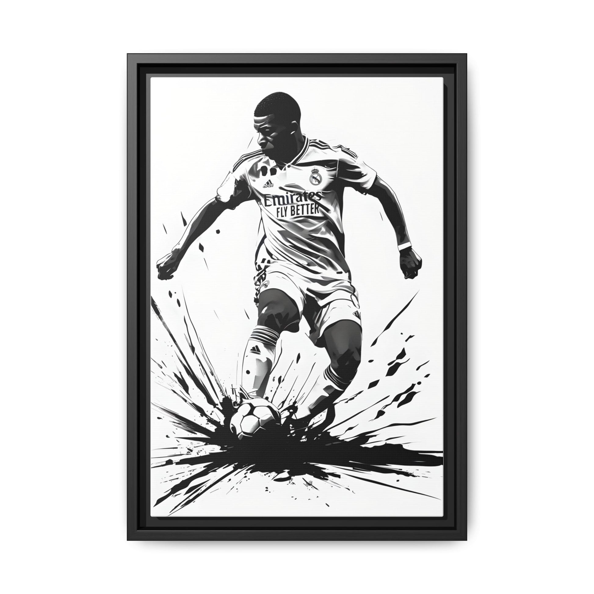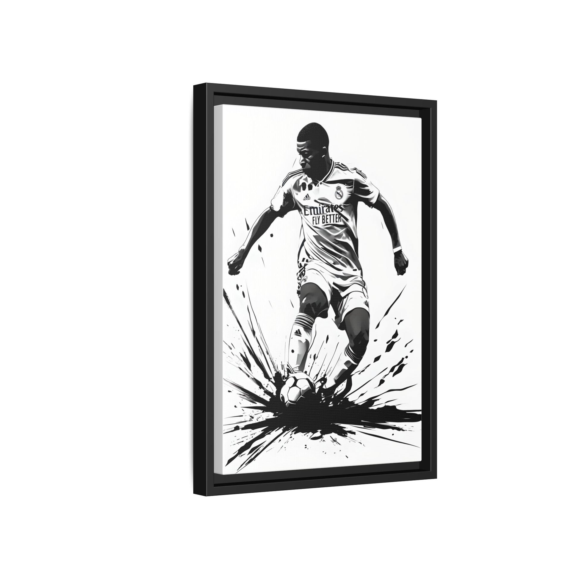 Elevate your space with this Kylian Mbappe Real Madrid wall art print on a matte canvas, framed in multi-color. Perfect for soccer fans and sports enthusiasts, this vibrant wall art adds a touch of elegance and energy to any room. Ideal for decorating a living room, bedroom, or home office. Relevant for sports events, birthdays, and holidays.