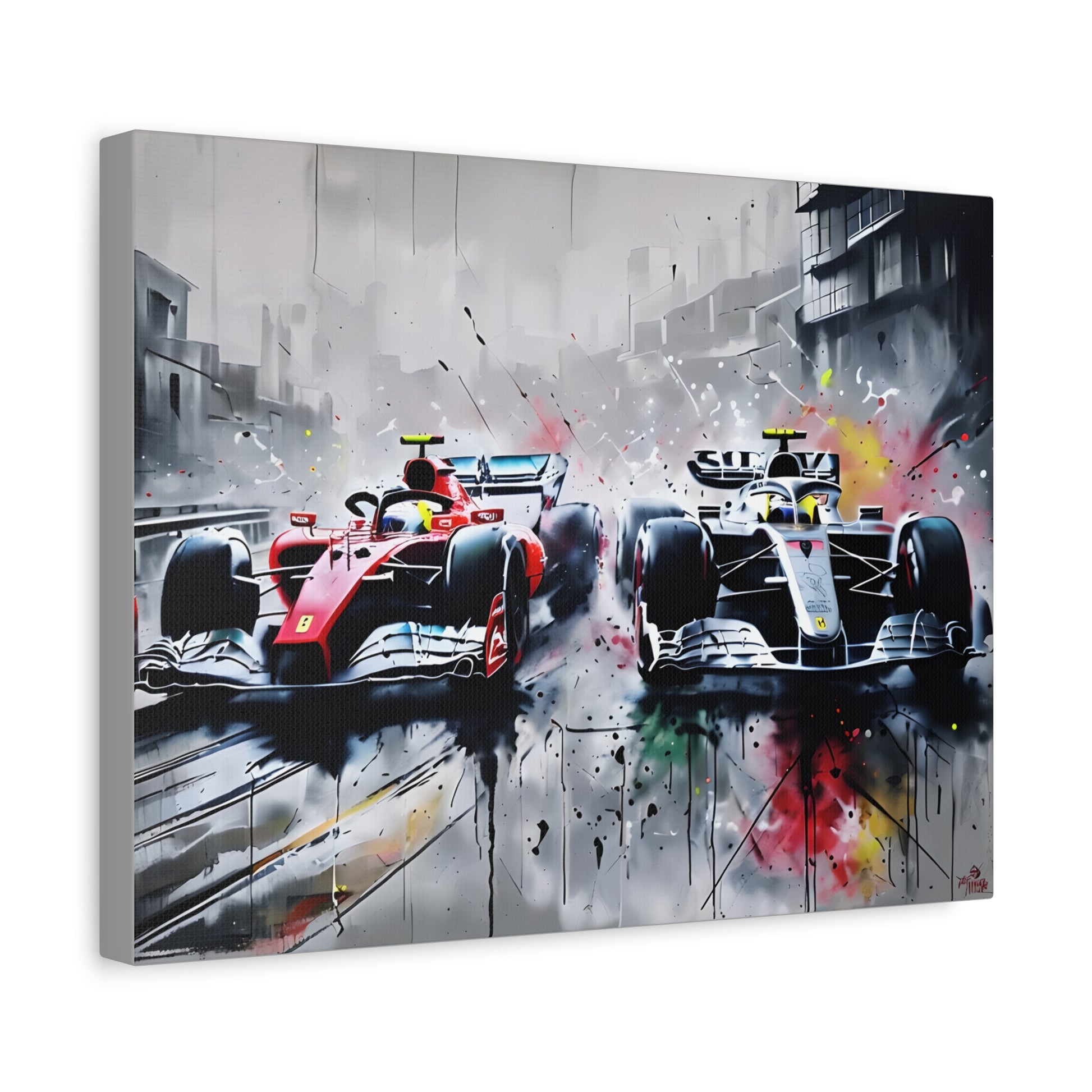 Canvas Print, Mercedes vs Ferrari Racing Head to Head Artwork, Wall Decor, Home Decor, Gift for Car Enthusiasts, Motorsport Fan, Racing