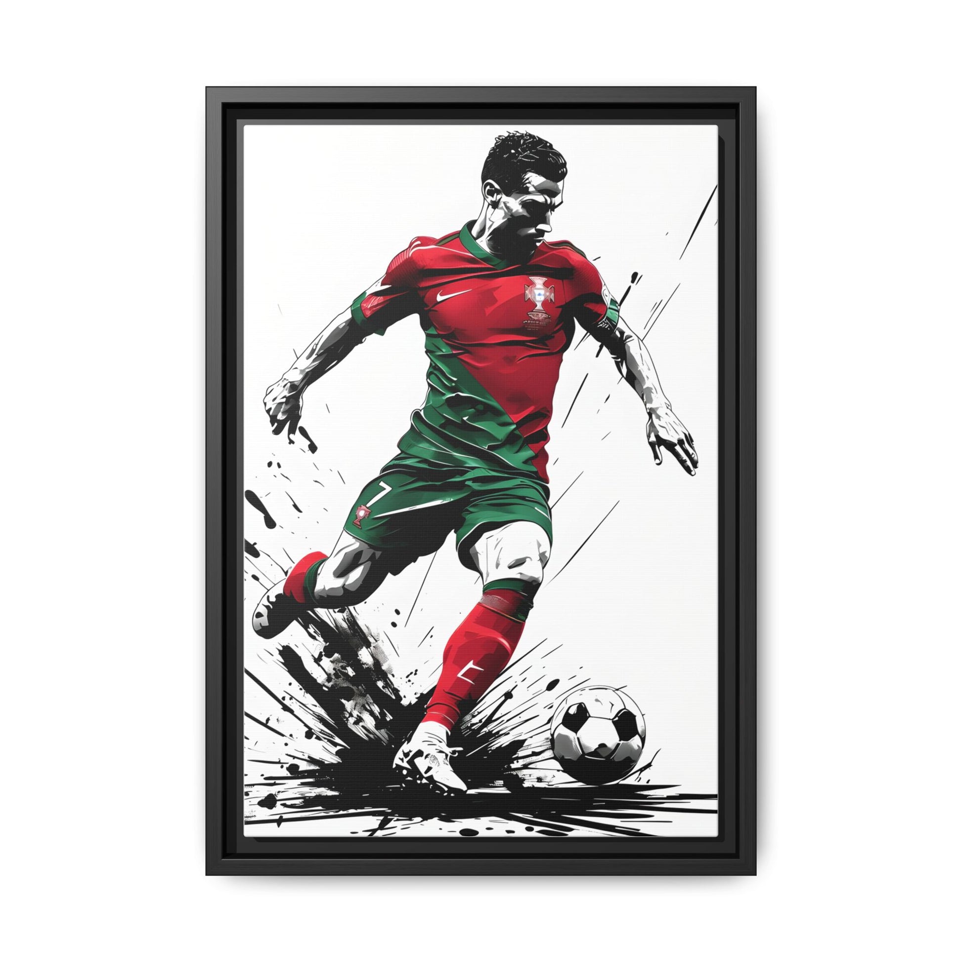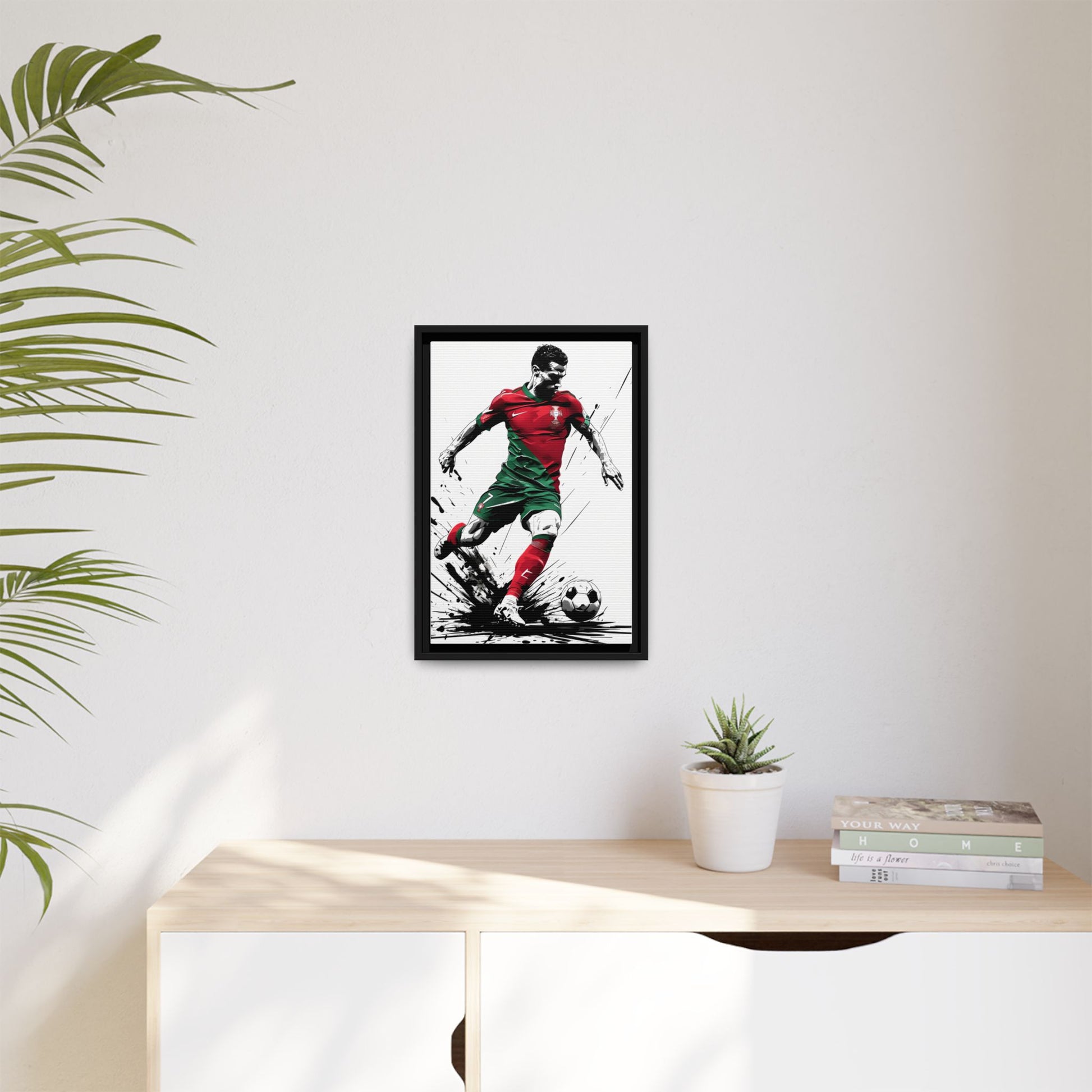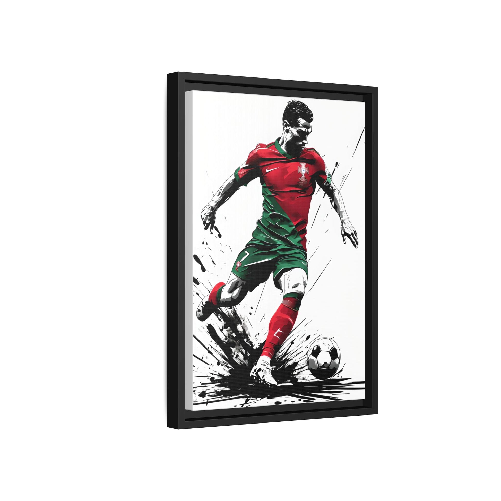 A stunning canvas print featuring the famous footballer Christiano Ronaldo, perfect for sports fans and soccer enthusiasts. This piece adds an energetic and sporty vibe to any room, making it a great addition to a living room, home office, or man cave. Ideal for sports-themed decor, Father's Day gifts, and birthday presents for soccer fans. Product features - High-quality canvas coating with vibrant colors - Sustainably sourced materials and eco-friendly latex inks - Choose from multiple sizes and frame colors - Easy to hang with included sawtooth hardware - Ideal for sports fans, soccer enthusiasts, and Father's Day gifts Care instructions - If the canvas does gather any dust, you may wipe it off gently with a clean, damp cloth.