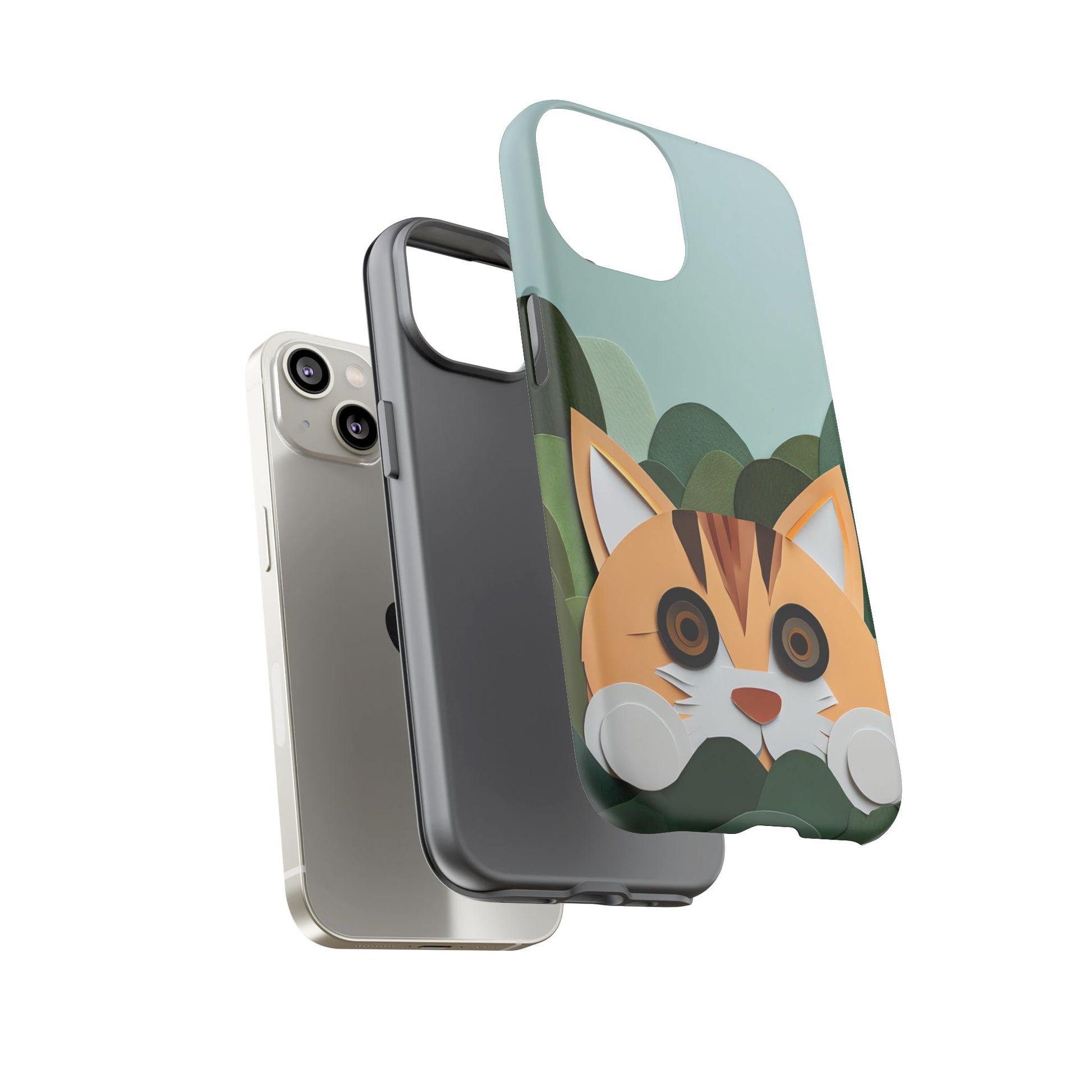 Introducing our vibrant and playful phone case, designed to add a touch of whimsy to your daily life. With its delightful illustration of a curious cat peeking through lush greenery, this phone case is perfect for cat lovers and anyone who appreciates fun, artistic designs. Its lightweight yet sturdy construction makes it an ideal accessory for everyday use, whether you're heading to school, work, or spending a day out with friends. Also, it's a thoughtful gift for occasions like birthdays, holidays, or simply to bring a smile to someone's face. This case not only protects your device but also showcases your personality!