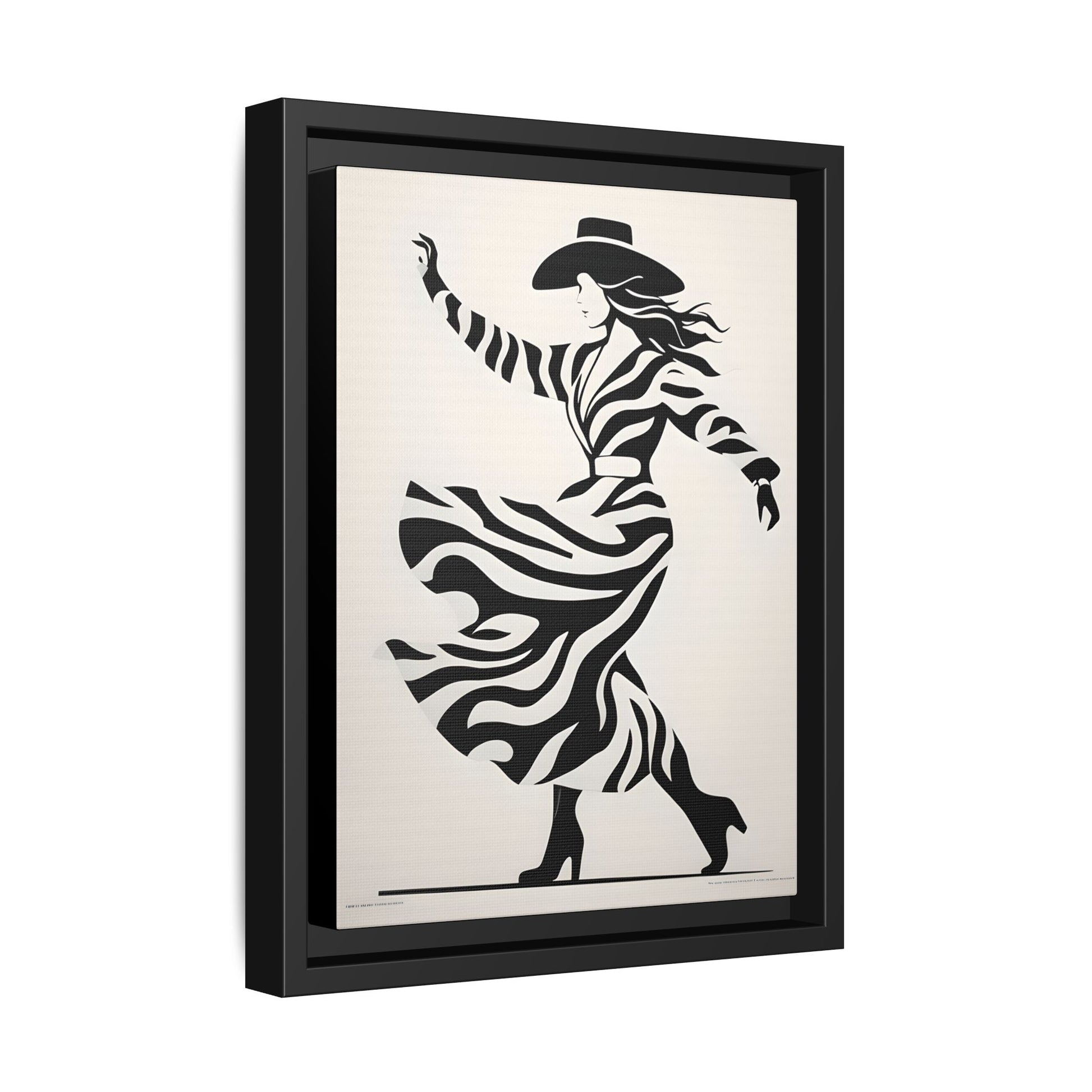 Dynamic Cowgirl in Motion with Striking Black and White Aesthetic Print