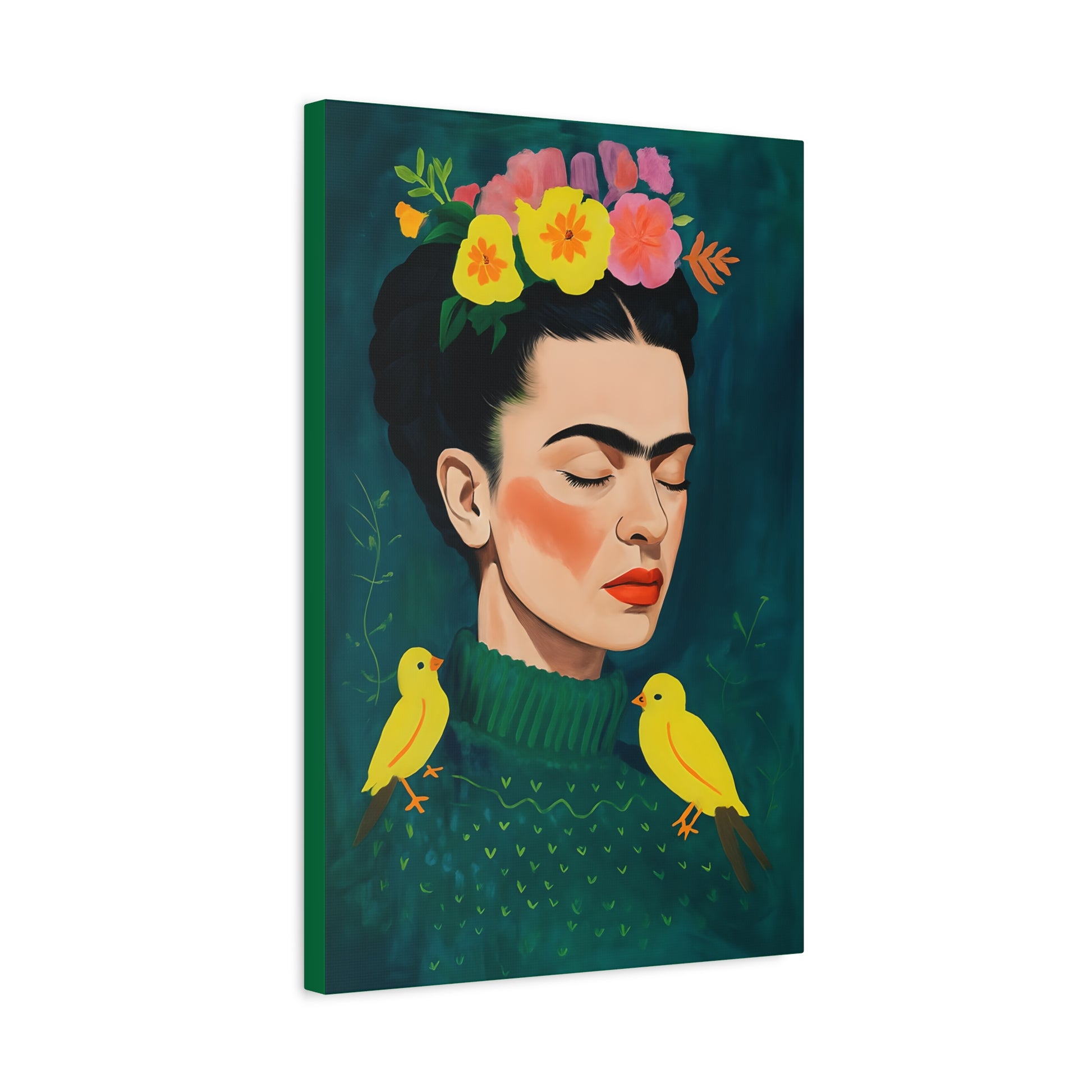 Frida Kahlo Inspired Portrait of Serene Woman In Sweater