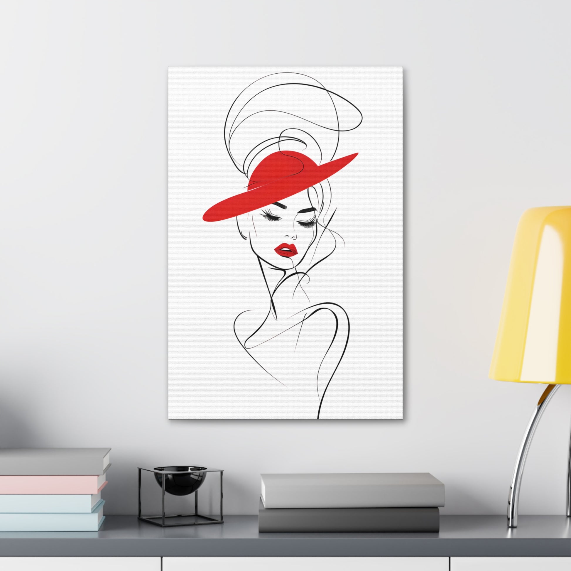 Elegant and artistic Canvas featuring a portrait of a woman in a red hat. This piece adds a sophisticated touch to any room, creating a chic and stylish atmosphere. Perfect for art lovers and home decor enthusiasts. Ideal for gifting on birthdays, anniversaries, and housewarmings.