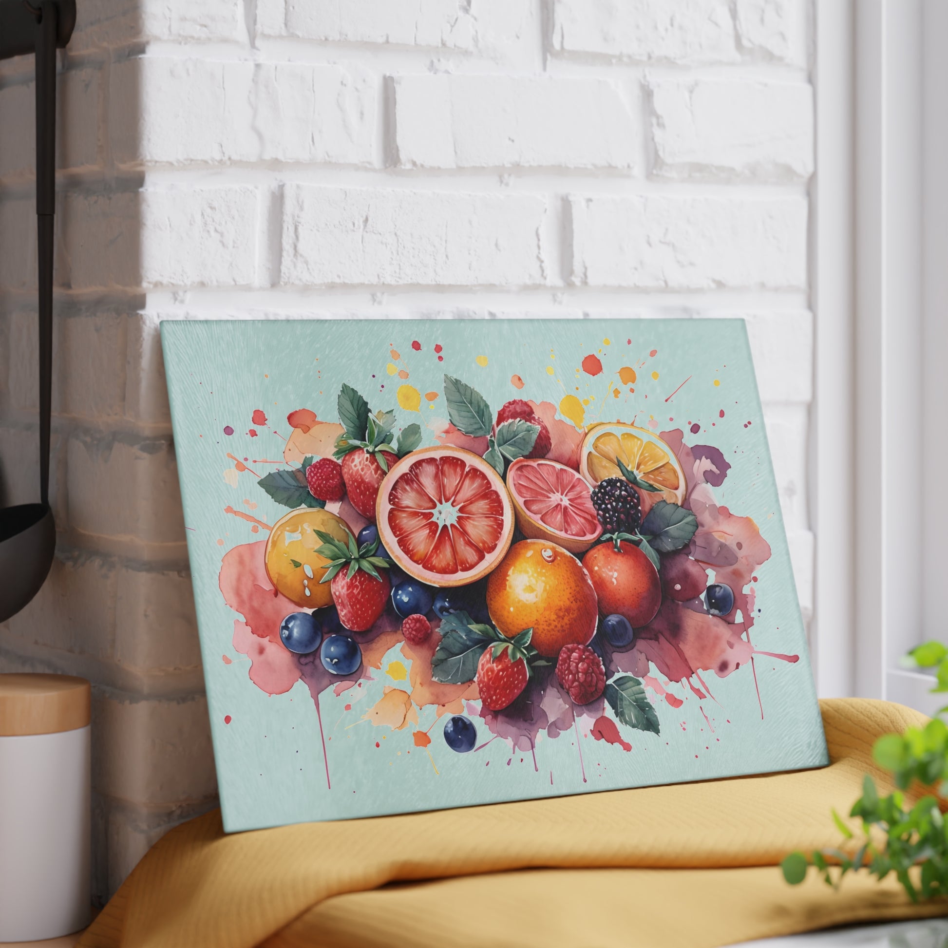 Vibrant Fruit Art Glass Cutting Board
